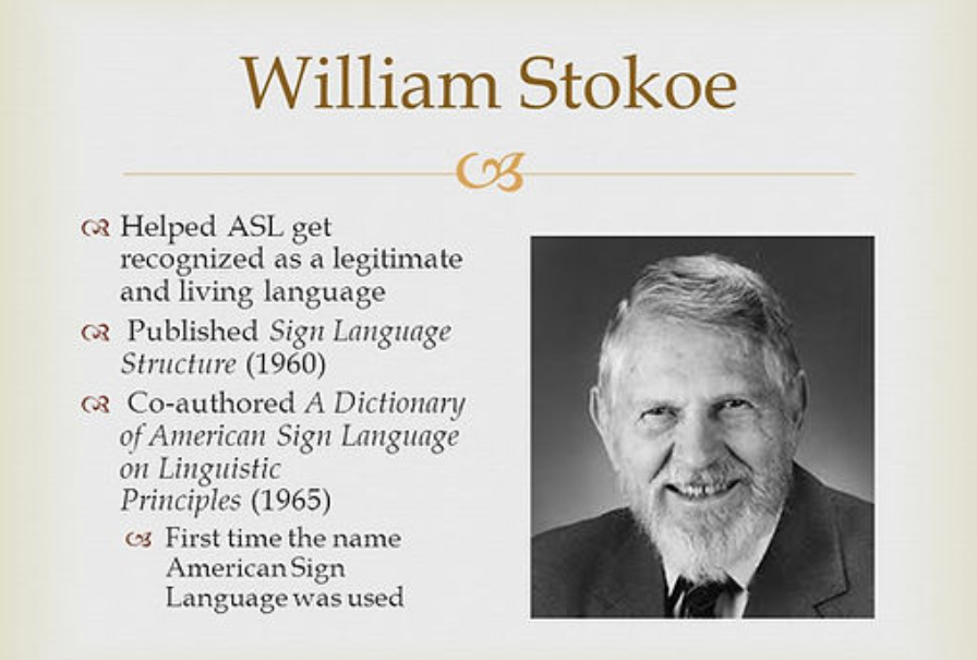 Stokoe published his findings about sign language as a legit language. His publication did not attract much attention until it is republished in 1965 with Casterline and Croneberg as Dictionary of ASL on Linguistic Principles.